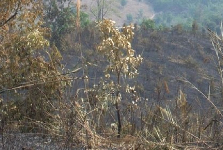 Do nắng nóng kéo dài, kết hợp với gió lớn nên ngọn lửa đã lan sang rừng sản xuất tại Tiểu khu 286 của 4 hộ dân trên địa bàn xã Ngọc Tụ.
