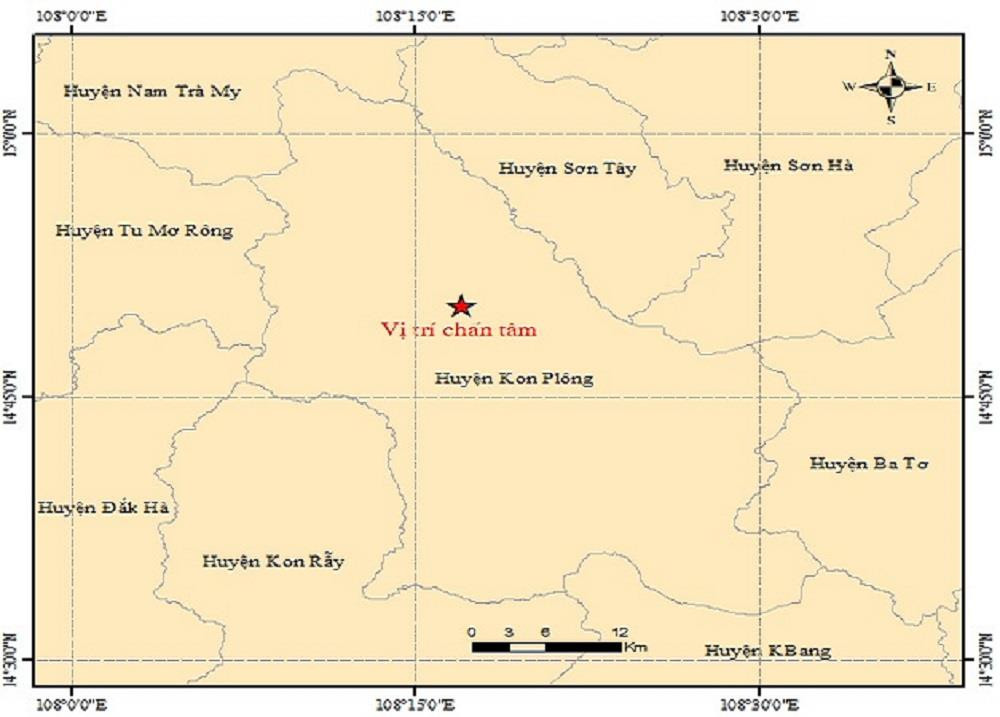 Ngày 4/6, theo Trung tâm Báo tin động đất và Cảnh báo sóng thần, Viện Vật lý Địa cầu (Viện Hàn lâm Khoa học và Công nghệ Việt Nam), vào lúc 8 giờ 24 phút 41 giây cùng ngày, tại huyện Kon Plông (tỉnh Kon Tum), xảy ra trận động đất 3.7 độ Richter.