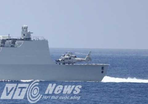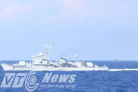 (VTC News) – Tàu hộ vệ tên lửa tối tân Trung Quốc gần giàn khoan 981 hạ đặt trái phép hung hãn vây đuổi một tàu cá nhỏ bé Việt Nam.