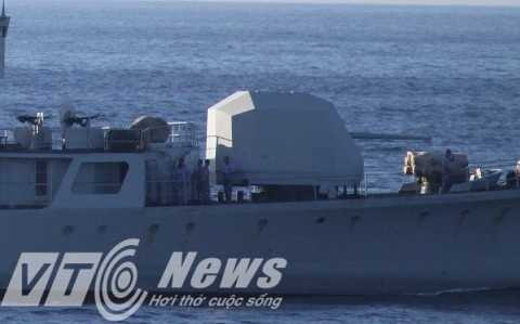 Khi đi sát tàu cảnh sát biển Việt Nam, từ mũi chiếc tàu chiến này, các khẩu pháo đã được tháo bạt, giương nòng về phía trước đe dọa tàu của ta.