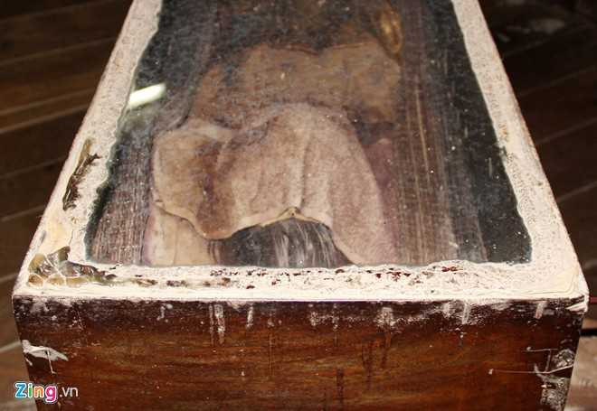 Thắp nén nhang trên bàn thờ, tôi lại gần quan sát xác khô qua tấm kính mờ phủ bụi thời gian. Tôi thực sự ngạc nhiên khi thấy xác chết còn rất nguyên vẹn, đầy đủ các bộ phận.