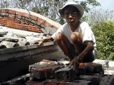 | Ông Đoàn đang tự phá bỏ ngôi mộ trên nóc nhà mình trước sức ép của dư luận và chính quyền địa phương |