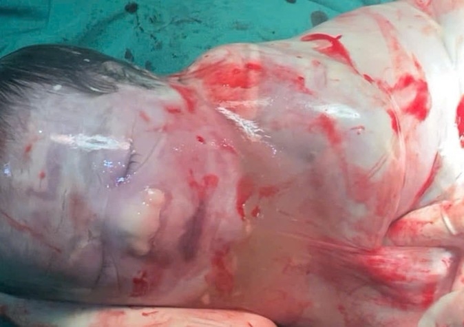 Em bé sinh trong "bọc điều" -hiện tượng hiếm thấy.
