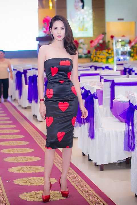 | Ngọc Trinh khoe thân hình "đẹp từng centimet" trong chiếc đầm cúp ngực ôm sát họa tiết trái tim vô cùng ngọt ngào. |
