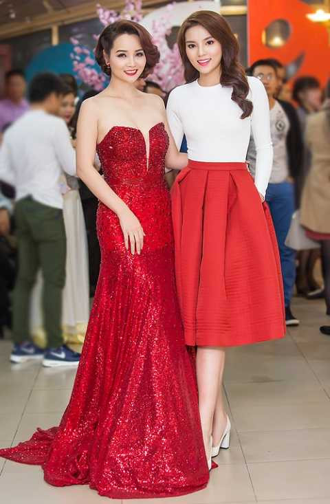 | Kỳ Duyên có dịp gặp gỡ Mai Thu Huyền. Trong khi Hoa hậu Việt Nam 2014 kín đáo, nền nã, diễn viên "Những ngọn nến trong đêm" lại hở bạo khi khoe vòng 1 nóng bỏng giữa thời tiết đầu đông. |
