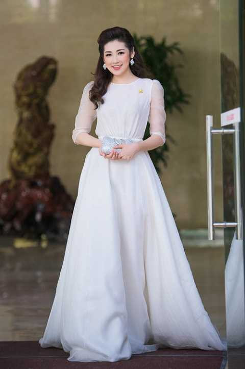 | Tú Anh đẹp lộng lẫy với đầm trắng của nhà thiết kế Lê Thanh Hòa. Bộ trang phục tôn lên làn da trắng mịn và vóc dáng thướt tha của cô. |