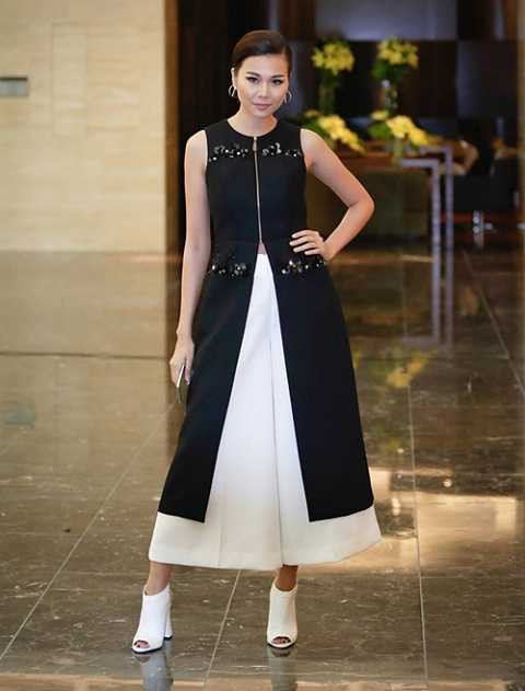 Hai màu đen trắng vẫn được nhiều mỹ nhân yêu thích bởi sự sang trọng, thanh lịch và quyến rũ. Ngoài Kỳ Hân, Diễm My 9x, Thanh Hằng hay Tú Anh cũng lựa chọn đầm trắng đen dự sự kiện.