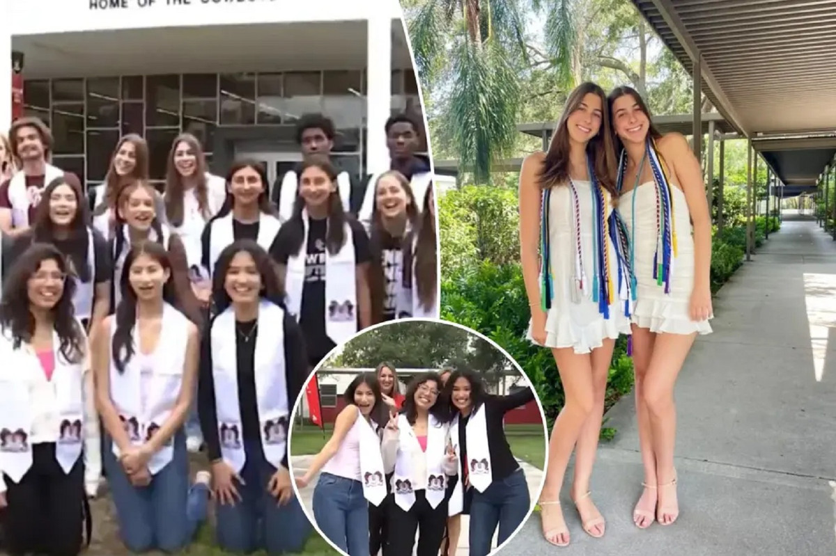 14 cặp song sinh và một cặp sinh ba tốt nghiệp cùng một lớp cấp 3. (Ảnh: NBC6)
