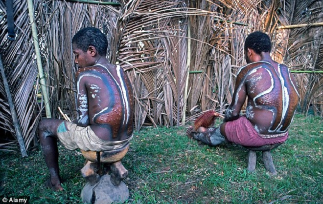Những cậu bé khi được 11 tuổi phải tham gia một nghi lễ lâu đời như trên. Đó chính là lý do khiến các em có lớp da vảy tương tự như loài bò sát ẩn nấp dưới nước.