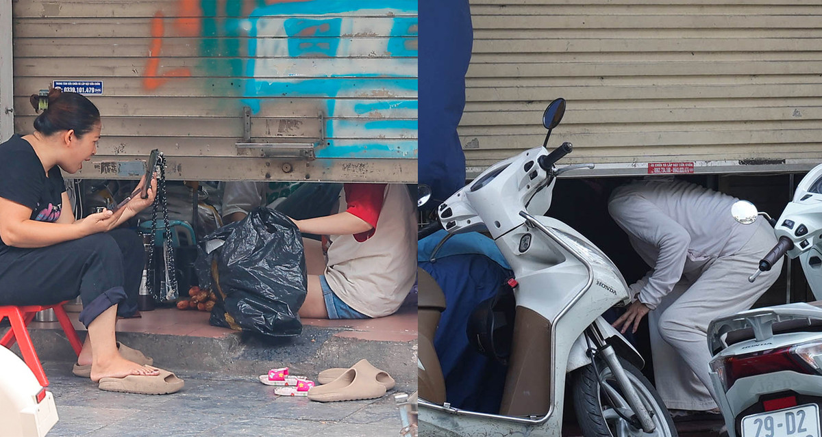 Khách vất vả khom lưng, luồn cúi để vào trong mua đồ.