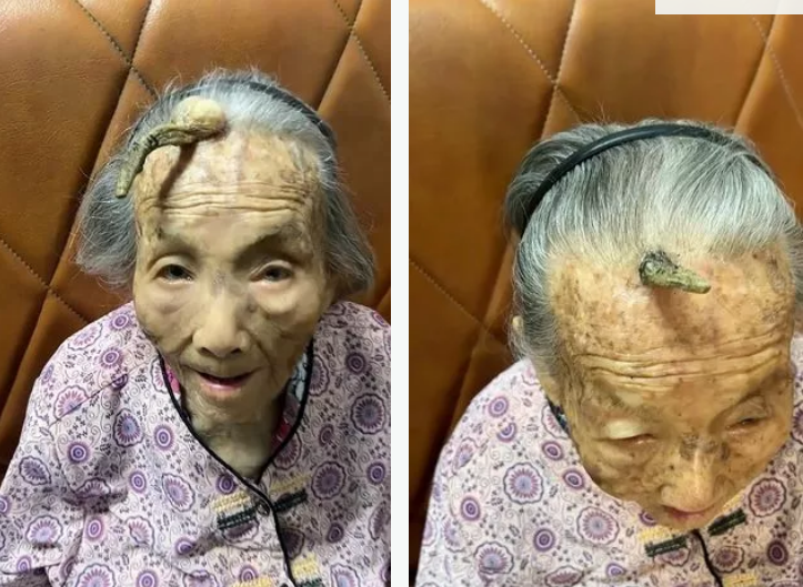 Cụ bà 107 tuổi với chiếc sừng dài 10cm mọc ra từ trán, được cho là "sừng trường thọ".