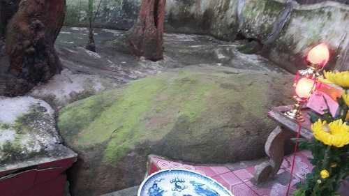 | Phiến đá phủ rêu xanh được người dân lập đền thờ, kính cẩn gọi là "ngài đá". |
