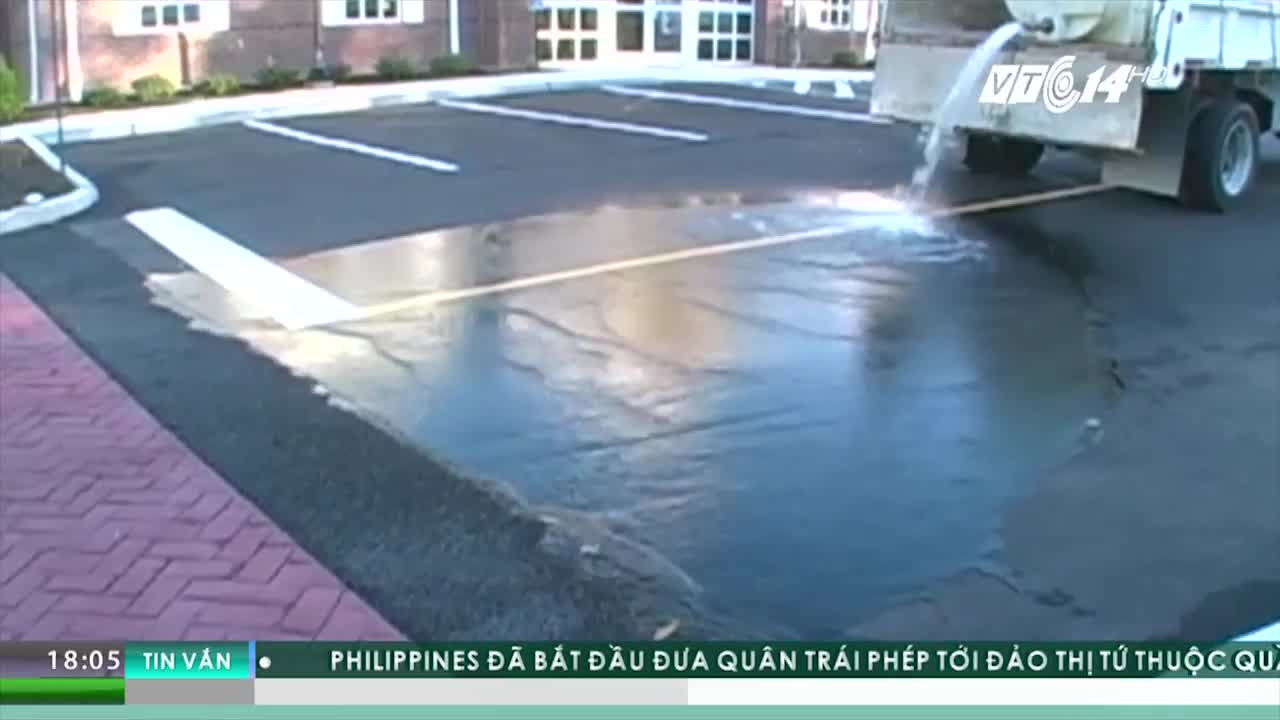 Một công ty tại Mỹ đã phát minh ra loại vật liệu để làm đường đi có khả năng thẩm thấu nước qua lớp bề mặt, do đó có thể tránh được tình trạng ngập úng khi mưa lớn.