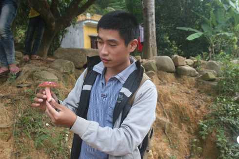 Anh Vinh chỉ cho chúng tôi thấy những chỗ có nấm, những cây nấm vừa nhú lên khỏi mặt đất, cánh nấm còn vừa chúm chím như nụ hoa, anh Vinh bảo: "Từ giờ đến khoảng 8 giờ sáng nếu hái được nấm là sẽ bán được giá cao vì được liệt vào nấm loại 1.