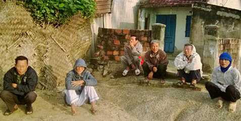 Trong ánh chiều yếu ớt, làng chài bình yên trong vắng lặng. Ven xóm nhà là vài người phụ nữ họp chợ, những cụ già ngồi lặng lẽ hướng ra biển. Đúng như cái tên người dân đặt, con đường nối liền ba thôn chưa đến 1km nhưng đã có hàng chục cụ già ngồi đợi với bao tâm trạng buồn vui lẫn lộn. Những con người gần đất xa trời này không ít thì nhiều đều có con cái còn lang bạt kiếm sống nơi đất khách.
