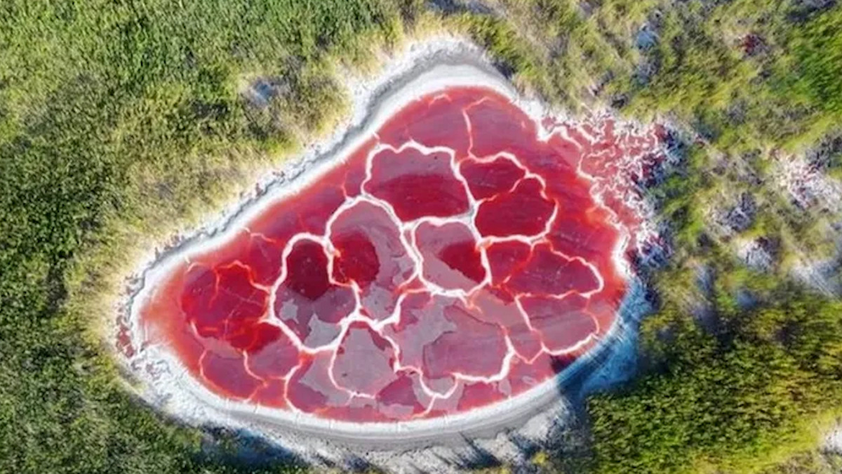 Kỳ lạ hồ nước đỏ thẫm giữa sa mạc hình dáng như trái tim