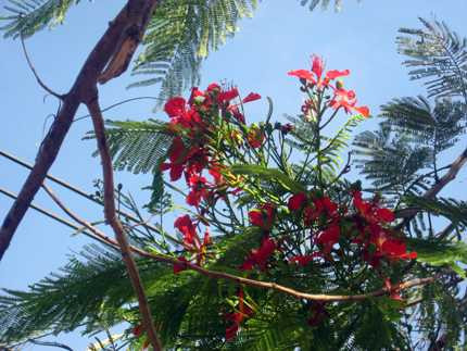 Một ông lão nhà ở cạnh cây phượng cho hay: "Hồi giờ chưa từng thấy chuyện này bao giờ, phượng thông thường phải nở vào mùa hè chứ. Năm nay thời tiết thật lạ, hết hoa mai, đào nở rực giữa mùa thu giờ lại đến chuyện phượng nở dịp cuối thu!" Hoa phượng nở rực giữa mùa đông.