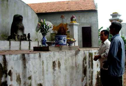 Phía sau chùa Địch Vĩ, bà cụ Nguyễn Thị Ngân nhai trầu bỏm bẻm, thắp hương khấn vái Quan lớn Hoàng Thạch, tức ngài chó đá. Bà Ngân bảo, ngày nào bà cũng hương khói, cầu Quan lớn Hoàng Thạch phù hộ gia đình, dòng họ, dân làng được khỏe mạnh, bình an. Bà thường nhặt lá, quét dọn bệ thờ trước khi hương khói.