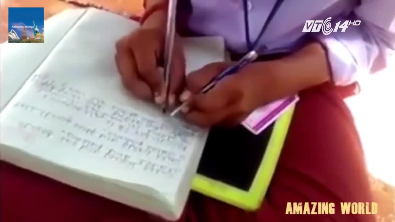 Được biết, tại ngôi trường đặc biệt này, mỗi tiết học 45 phút đều sẽ dành ra 15 phút để cho các học sinh rèn luyện kỹ năng viết bằng hai tay.