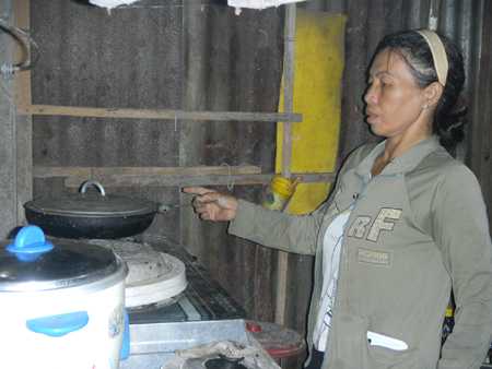 Chị đang sống cùng đứa con gái (năm nay 11 tuổi) trong căn nhà tình thương do chính quyền địa phương hỗ trợ. Đó là một ngôi nhà nhỏ nằm giữa đồng sâu hun hút, trước sau trống trải. Không khí trong nhà có phần ảm đạm.