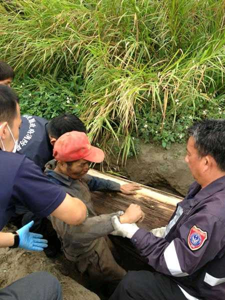 Lực lượng cứu hộ đang giải cứu ông Chien ra khỏi chiếc quan tài