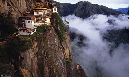| Đền Taktshang Tiger ở độ cao 700m phía trên thung lũng Paro, Bhutan được coi là nơi để các nhà tu hành ‘kết nối’ với thần linh |