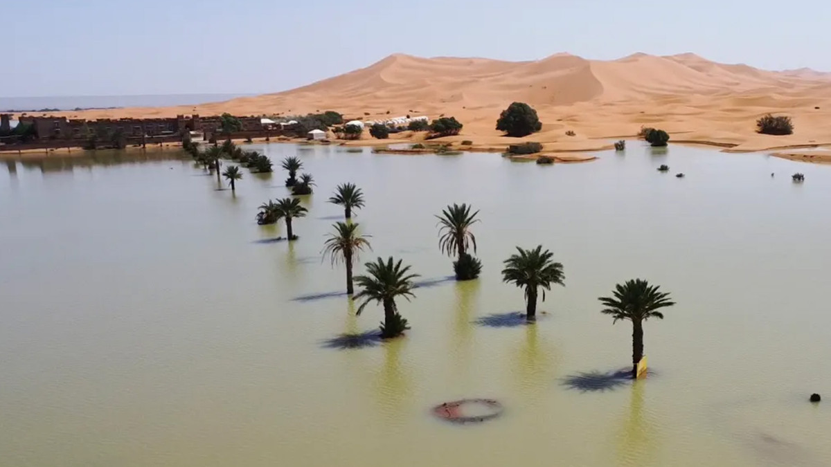 Nơi khô cằn nhất thế giới, sa mạc Sahara đã biến thành đầm nước sau trận mưa lớn kỷ lục.