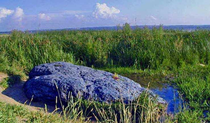 Theo truyền thuyết, tảng đá xanh biếc từng nằm trên đỉnh ngọn núi nhỏ cách không xa hồ Plescheevo. Đó là ngọn núi thiêng và bộ tộc ở nơi đây dùng tảng đá mầu nhiệm làm nơi đặt đàn tế lễ.