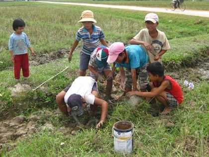 Trẻ con Châu Lộc cũng hứng thú săn chuột để bán.