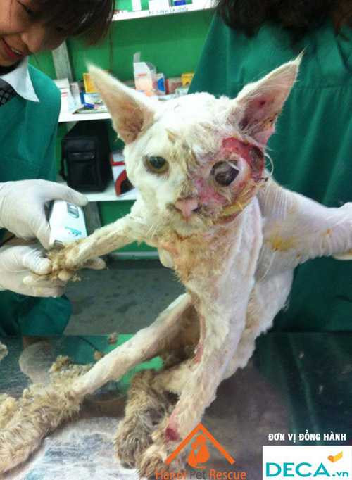 Ngay lúc đó, Trang bế mèo đến một phòng khám, rồi ngồi đợi đến 6 giờ sáng bác sĩ mới đến cấp cứu cho con mèo. Con mèo được đưa ngay vào lồng ấp để hồi sức. Khi qua giai đoạn nguy hiểm, thì bác sĩ tiêm thuốc, tẩy giun, điện châm cho mèo.