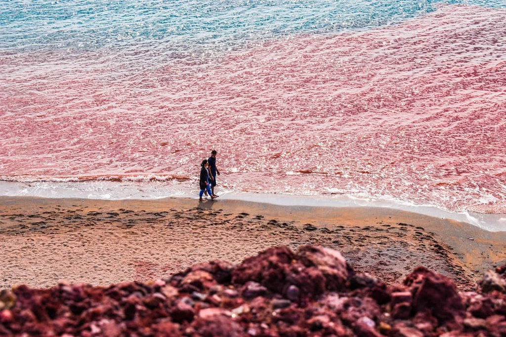 Đảo cầu vồng Hormuz (Iran) thu hút du khách và các nhà khoa học bởi hiện tượng sóng biển chuyển màu đỏ mỗi khi đánh vào bờ.