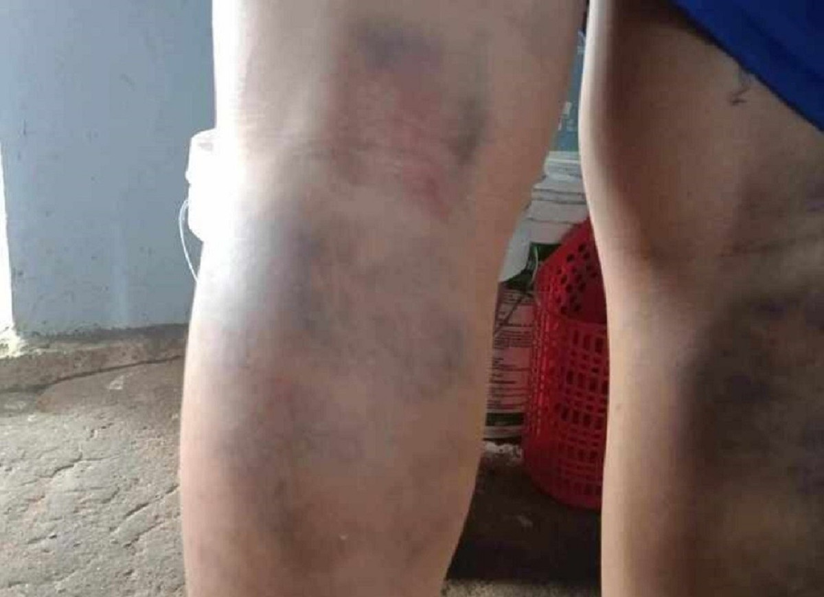 2 chân của nam sinh bị đánh bầm tím. (Ảnh: N.D)