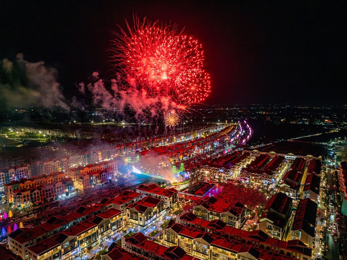 Điểm đến quốc tế mới Vinhomes Royal Island trên đảo Vũ Yên, Hải Phòng cũng chật kín khách du lịch trong những ngày nghỉ lễ. Tại đây, hàng trăm nghìn du khách và cư dân được mãn nhãn với màn trình diễn nhạc nước nguy nga, tráng lệ kết hợp với vũ điệu pháo hoa rực rỡ, hoành tráng chưa từng có trong ngày Lễ Quốc khánh tại Quảng trường Hoàng gia Châu Âu Royal Square.