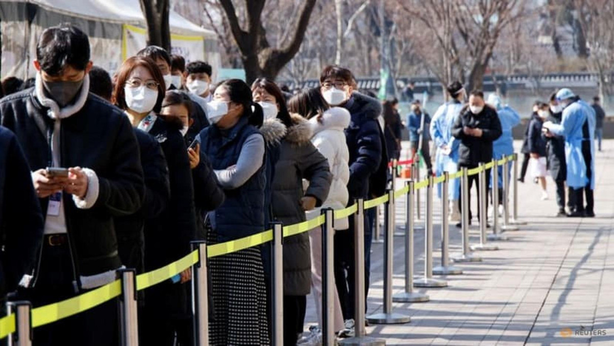 Người dân xếp hàng xét nghiệm ở Hàn Quốc. (Ảnh: Reuters)