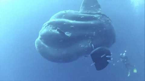 Một nhóm thợ lặn gặp con cá mặt trăng với thân hình như một quả khinh khí cầu màu xám khổng lồ ở ngoài khơi Địa Trung Hải.