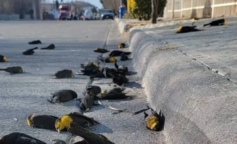 Hình ảnh cuối video cho thấy xác lũ chim nằm la liệt trên phố.