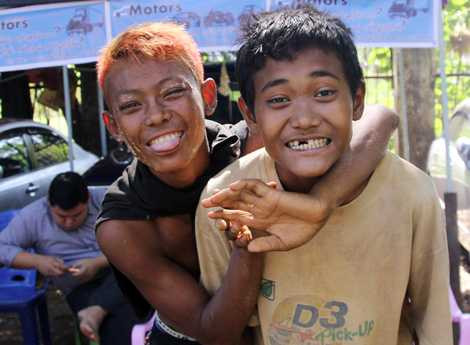 | Yankin (bên phải) cười đùa trước ống kính (Ảnh: Hà Thành) |