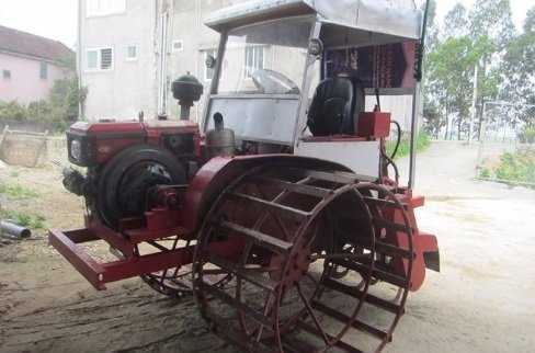 Sau hơn 3 tháng miệt mài, chiếc máy cày đa chức năng cũng ra đời từ động cơ Diesel với 28 mã lực có hộp số được chế từ máy gặt liên hợp. Sắt phế liệu được anh tận dụng hàn nối thành khung sườn, cabin được lắp ghế ngồi, có bộ phận tăng tốc, giảm tốc.