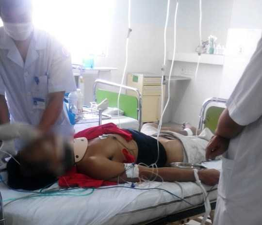 Các bác sĩ và nhân viên y tế lập tức nẹp cố định cổ, cố định cột sống và lưng, đưa bệnh nhân lên cấp cứu trong tình trạng bị rách da vùng trán làm lộ sọ, không bắt được mạch, nguy kịch.