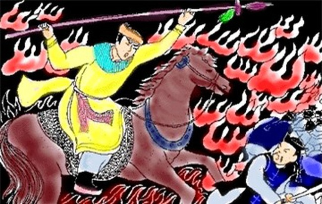 Tranh vẽ mô tả binh lính nhà Tần đẩy tượng Lý Ông Trọng đuổi quân Hung Nô. (Nguồn: Huyền sử đời Hùng)