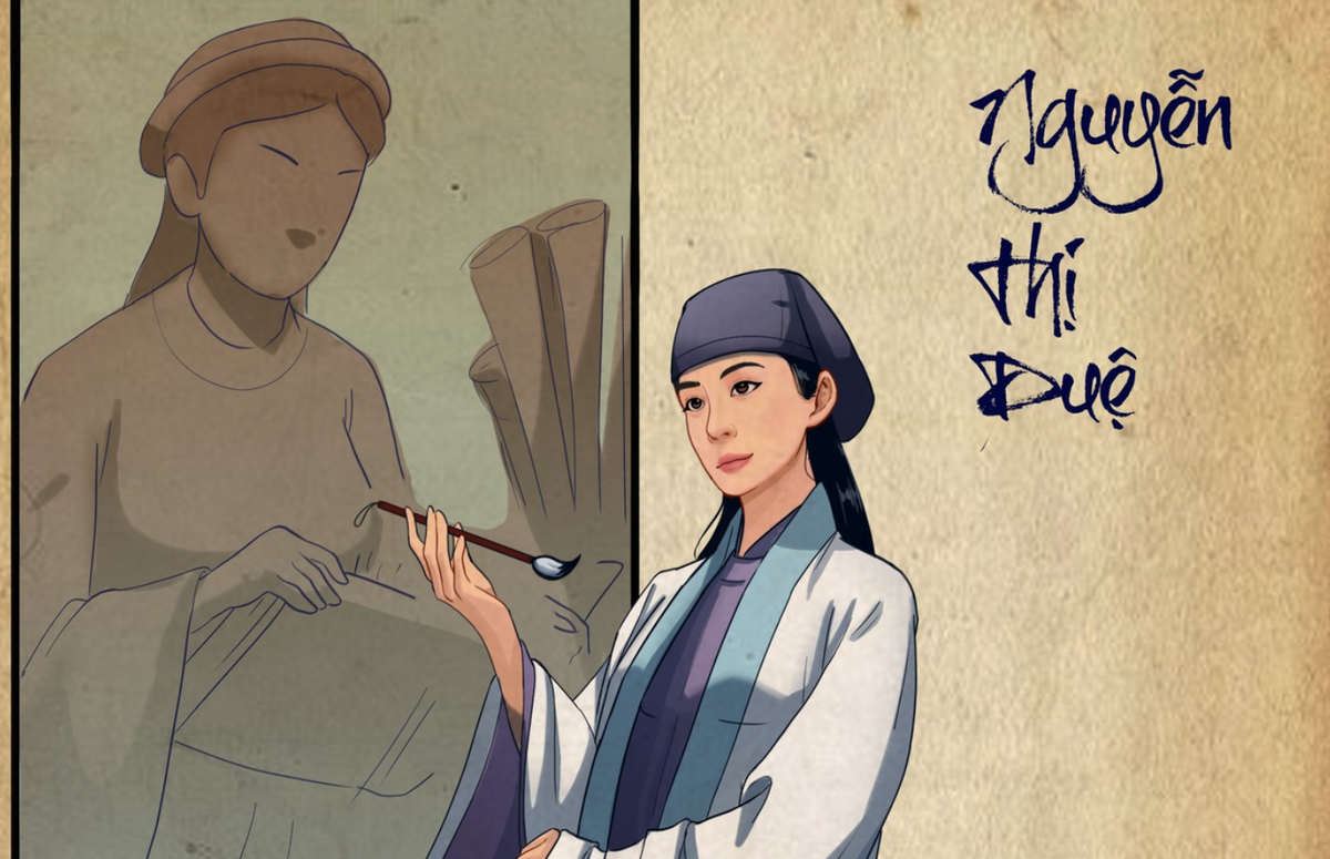 Tranh vẽ bà Nguyễn Thị Duệ. (Ảnh: Sách Những người thầy trong sử Việt)