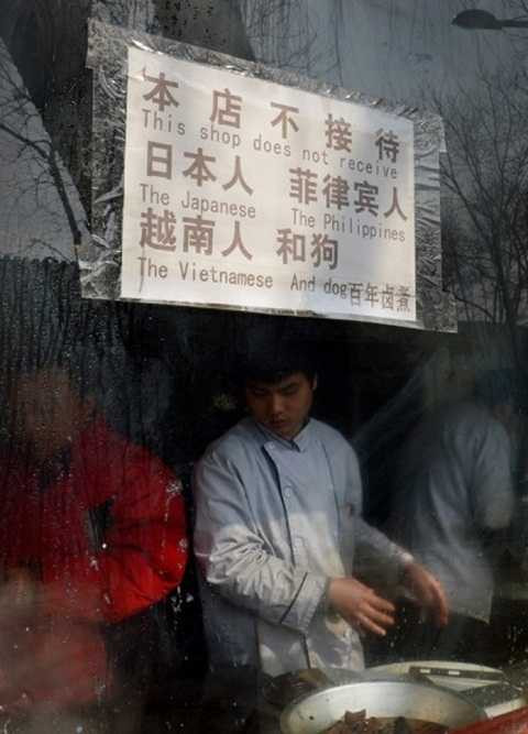 Trong thời gian công tác tại Trung Quốc, tôi hai lần được người Trung Quốc dẫn tới thăm các tấm biển có nội dung miệt thị này.