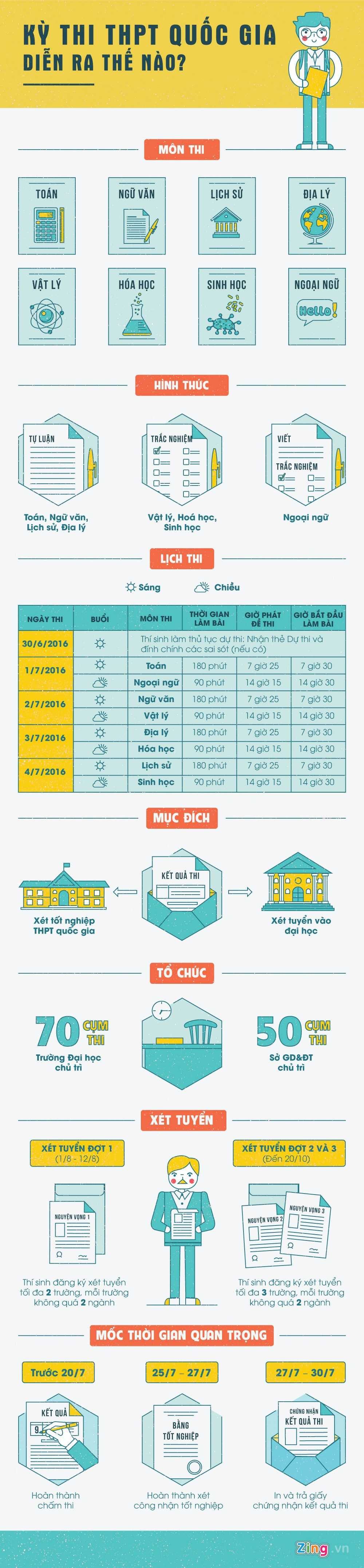 Kỳ thi THPT quốc gia 2016 diễn ra từ ngày 30/6 đến 4/7 tại 120 cụm thi trên cả nước.