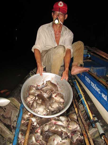 Đến con kênh thứ 3, tôi thấy có rất nhiều ánh đèn và tiếng nói cất lên: Hôm nay được nhiều không? Có bắt được rắn không? Anh Sửu vội đáp: Chắc được hơn 5 kg. Còn anh được nhiều không? Một người lạ mặt giơ chiếc giỏ lên, tôi ước chừng trong ấy khoảng 8 kg chuột. Sau đó, có thêm hai người nữa cũng tấp xuồng vào, rồi các anh vừa hút thuốc, vừa trò chuyện.