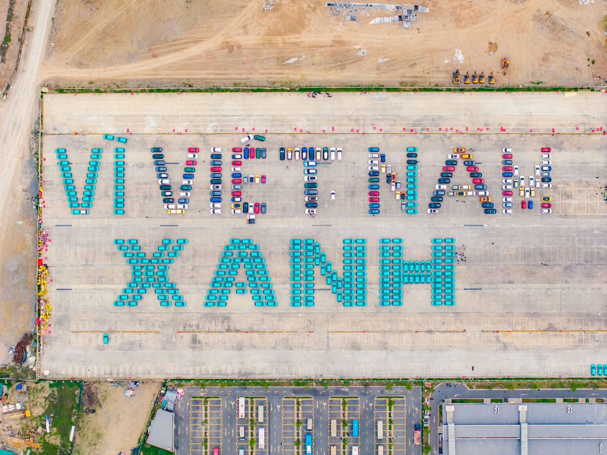 Hơn 400 xe ô tô điện VinFast xếp thành thông điệp Vì Việt Nam Xanh. (Nguồn: Vingroup)