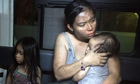 Bằng tình yêu của một người mẹ, chị tay bồng hai con, vượt qua biển lửa. Chị bị bỏng, đau rát nhưng lúc lên xe cấp cứu vẫn cho đứa con bé bỏng bú sữa.