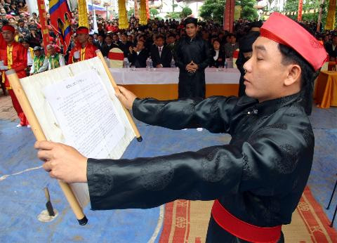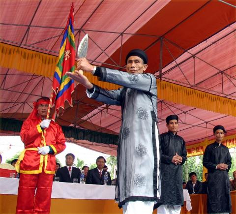 | Chủ tế cầm dao chỉ trời vạch đất |