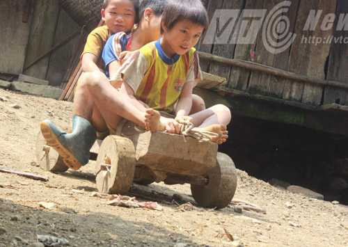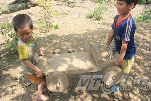 | Xe gỗ là đồ chơi duy nhất của bọn trẻ sống giữa rừng già |