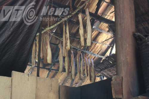 Hoàng Cằn U vừa nói đến chuyện rất nhiều thịt, vừa chỉ tay lên mái nhà. Tôi ngửa mặt lên, thấy trên trần nhà quả là lủng liểng thịt. Những miếng thịt lợn dài đến nửa mét ám khói, treo cách mặt đất đến 3m.