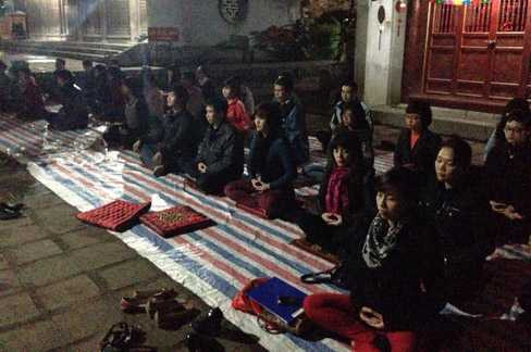 | Các học viên ngồi thiền hàng đêm ở đền Voi Phục |